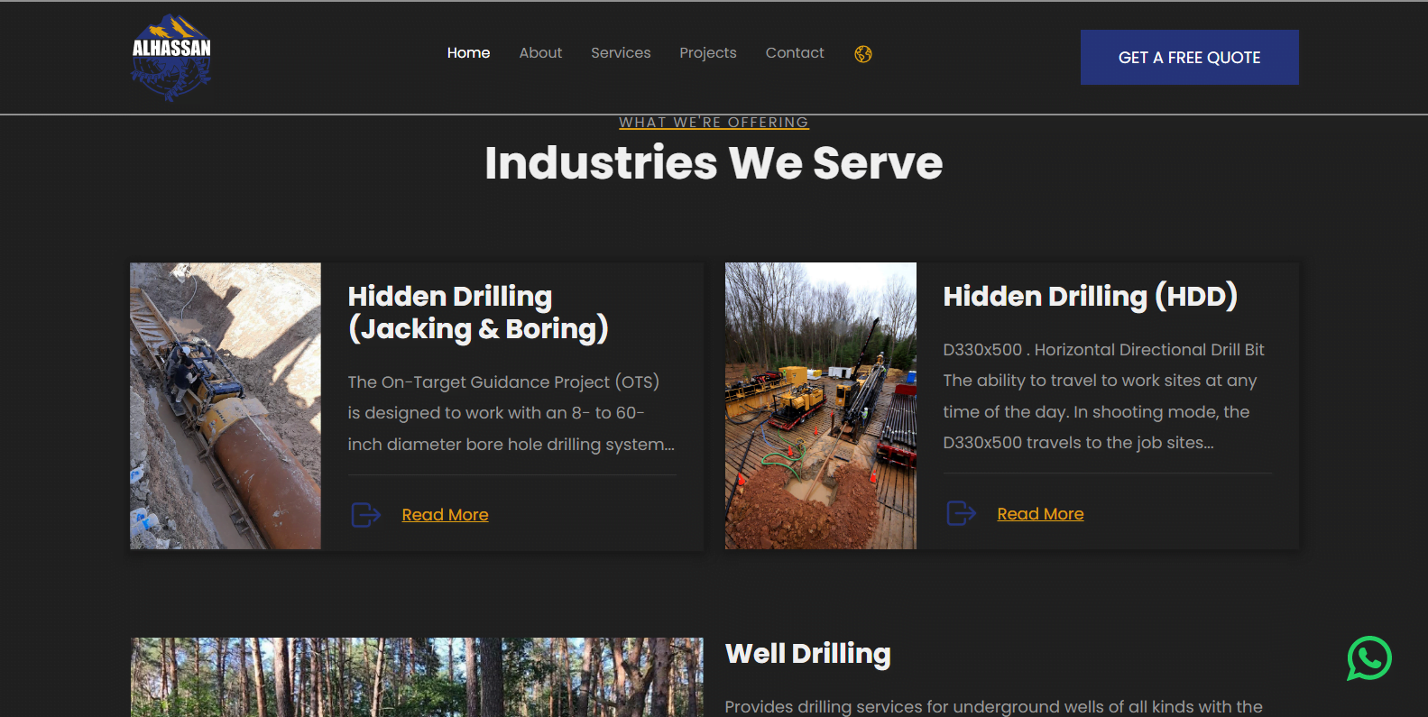 تصميم موقع إلكتروني لصالح مكتب الحسن الذي يعمل في مجال الحفر المخفي وحفر الآبار وله عقود مهمة جداً مع شركات عالمية والحكومة العراقية