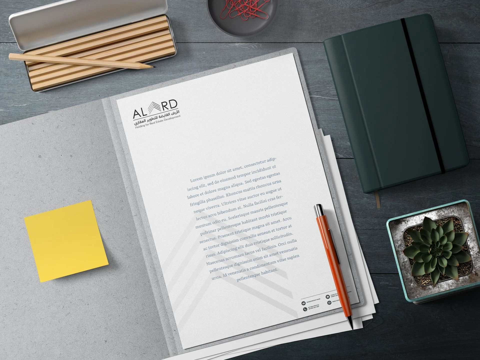تصميم شعار مع هوية بصرية لشركة الأرض القابضة للتطوير العقاري وهي شركة رائدة في مجال الاستثمار العقاري ..